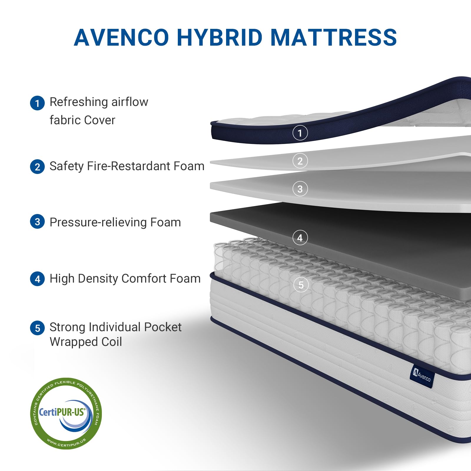 - Healthy & Safe Sleep Certified: This premium king mattress uses CertiPUR-US certified foam and an OEKO-TEX STANDARD 100 cover. Rigorous material safety and eco-standards ensure truly healthy, worry-free sleep for your hybrid mattress