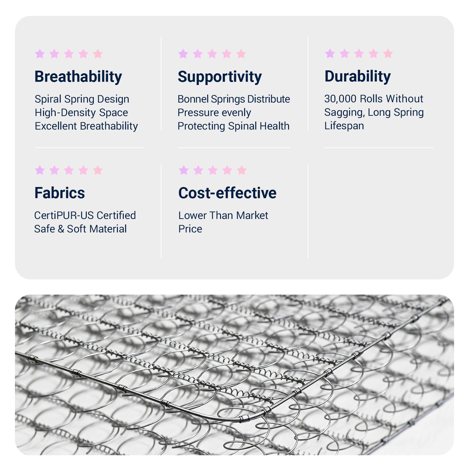 - Enhanced Breathability & Bonnell Spring Support: Our twin XL size mattress features a durable Bonnell spring base with advanced airflow channels. Paired with dual-layer comfort foam, it reduces heat buildup while providing robust support and pressure relief for growing bodies